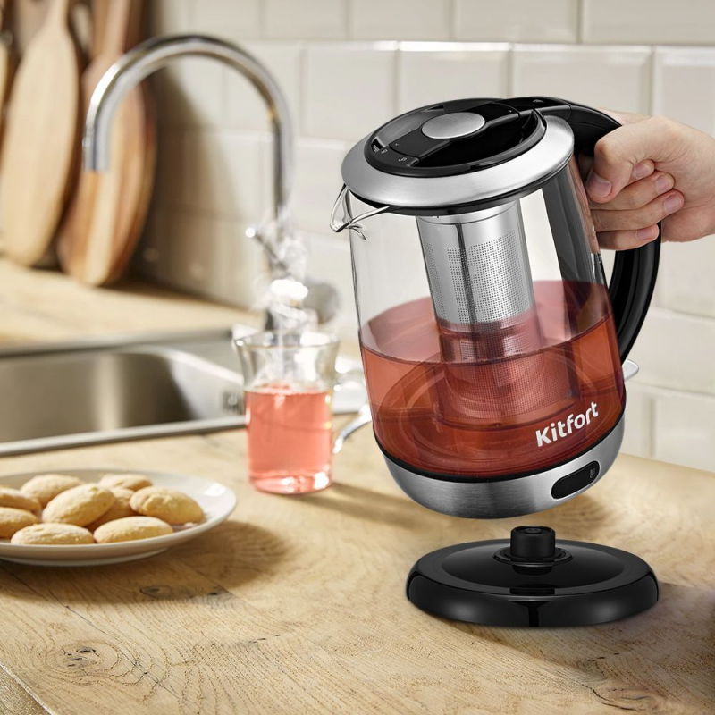 Электрический чайник КТ-6155 может не только вскипятить воду, но и нагреть её до температур: 70, 80, 85, 90, 95 и 100°С. Возможность выбрать температуру нагрева в сочетании с встроенным фильтром позволяют заваривать любимые сорта чая прямо в чайнике.