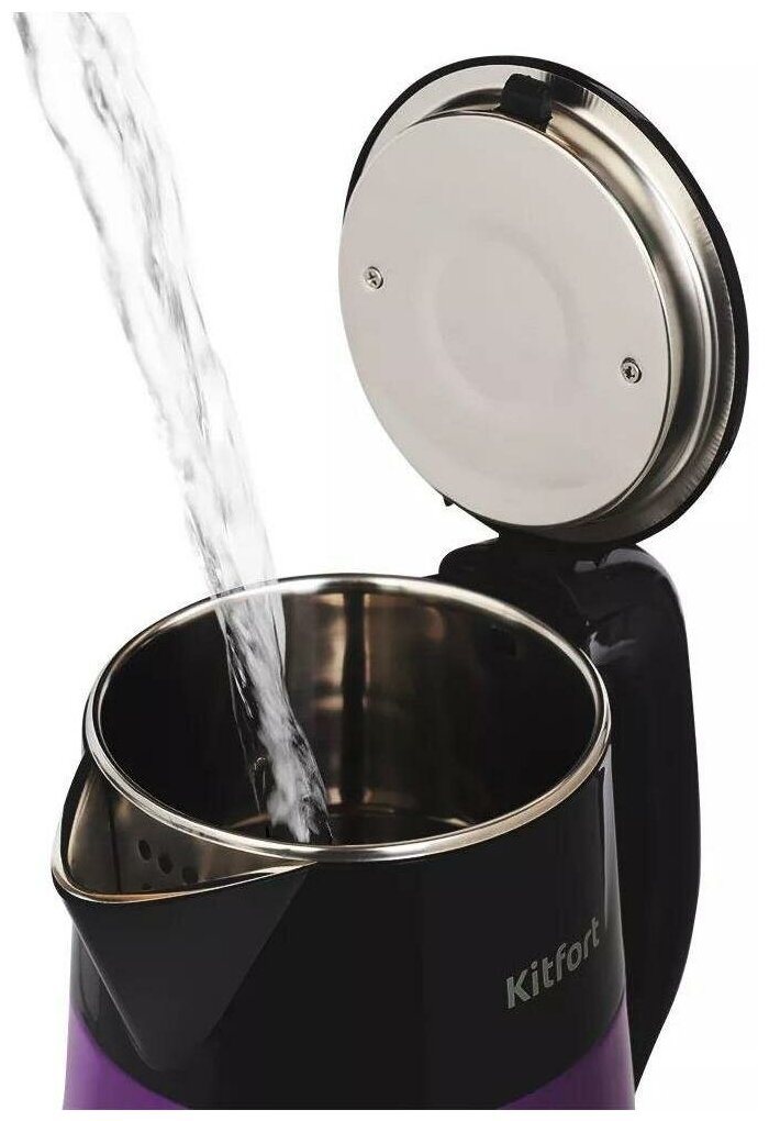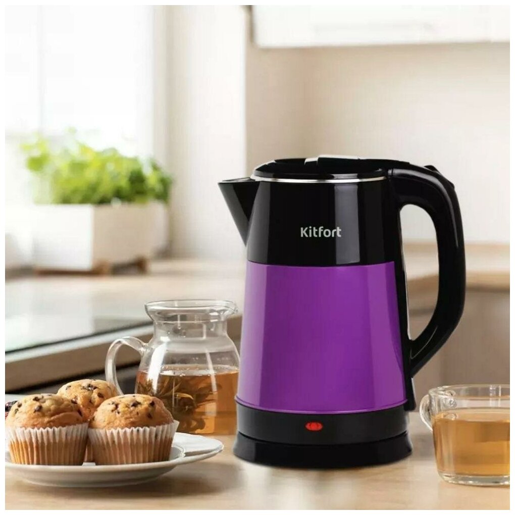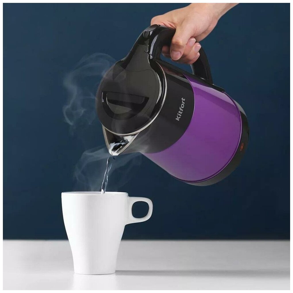 Электрический чайник Kitfort КТ-6166 предназначен для кипячения воды дома, в офисе, на даче. За один раз в чайнике можно вскипятить до 2 л воды. Этого хватит, чтобы приготовить горячие напитки на большую семью.