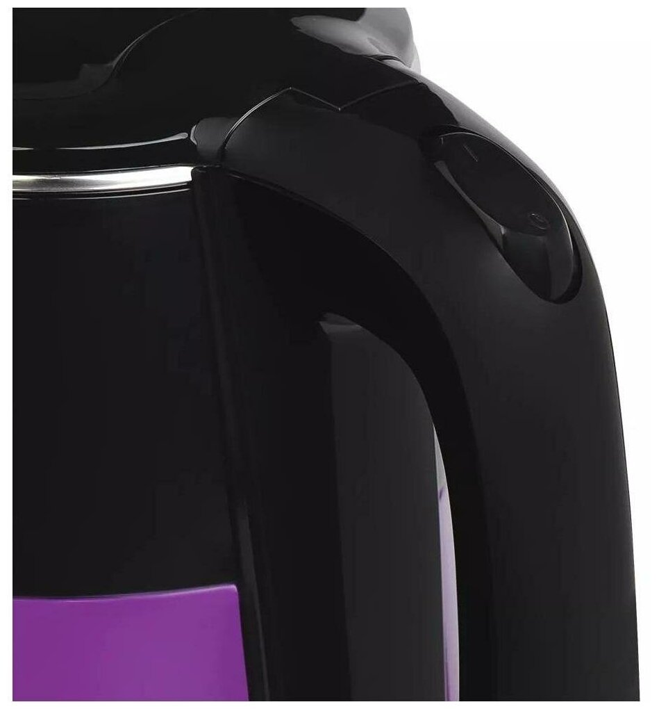 Кнопка «Вкл/Выкл» находится на ручке. При включении чайника загорается подсветка индикатора работы. Ручка чайника пластиковая, не нагревается и удобно лежит в руке.