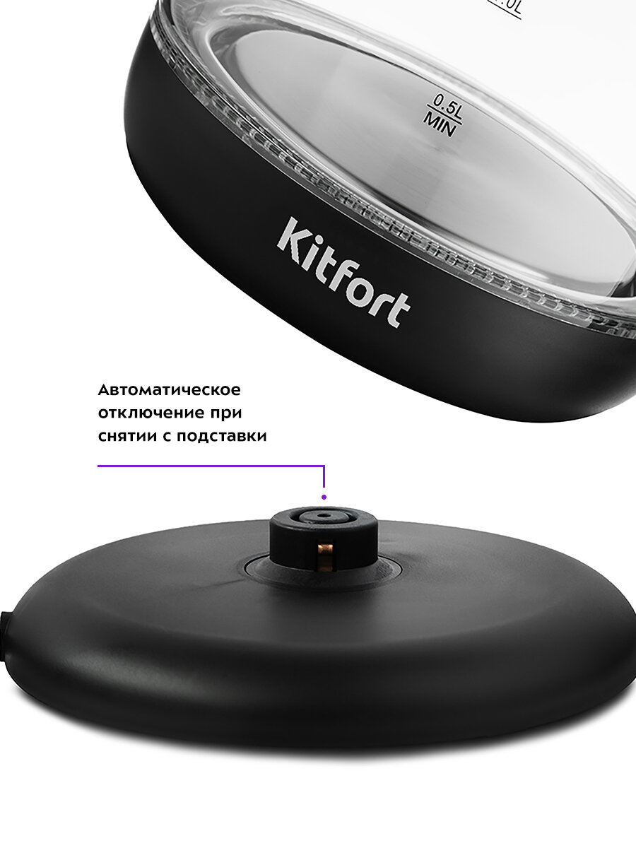 Чайник Kitfort КТ-625 предназначен для кипячения воды дома, в офисе, на даче. Ручка чайника пластиковая, не нагревается и удобно лежит в руке.