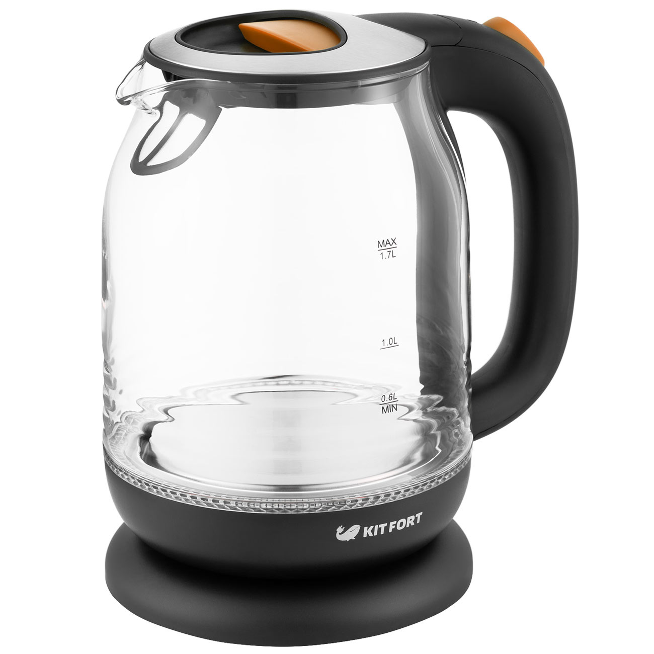 Kitfort КТ-654-3 – электрический чайник, выполненный в стильном современном дизайне. Во время нагрева воды его колба эффектно подсвечивается светодиодами, что создаёт в кухне уютную атмосферу.