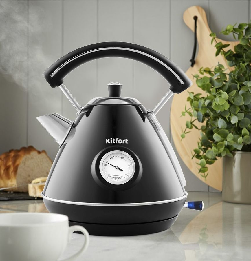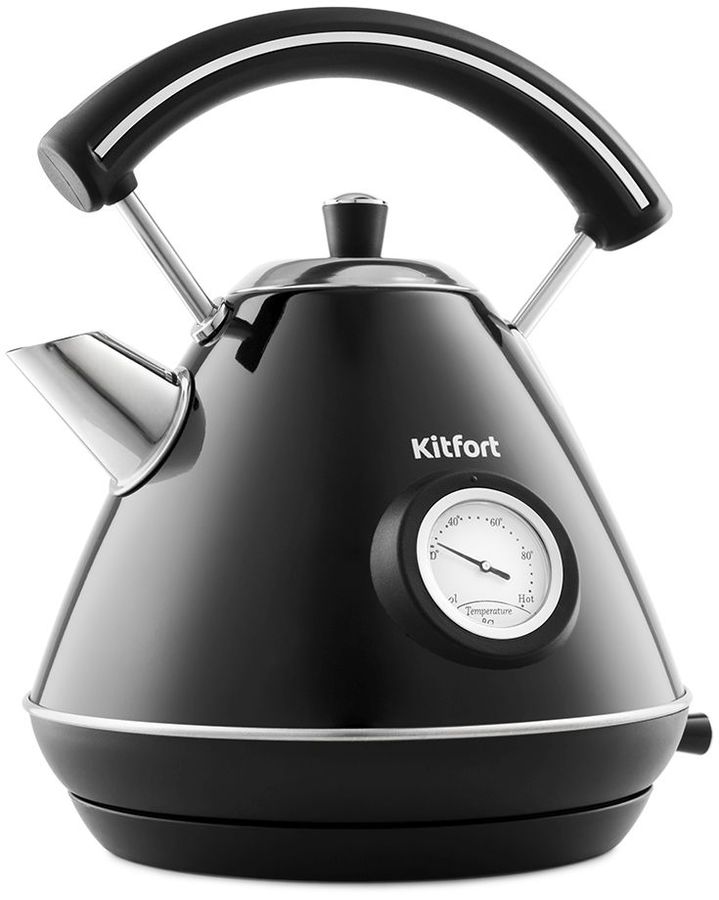 Чайник электрический KITFORT KT-687-2 - стильный, брутальный в форме черного конуса скрасит быт как одинокого мужчины, так и небольшой семьи. Он будет радовать вас и в городской квартире, и на даче. Надежность и комфорт гарантированы разработчиками фирмы KITFORT. Чайник оснащен системой безопасности. Вы не соприкоснетесь с нагревательным элементом, он скрыт в корпусе. Чайник не начнет работу, если в нем нет воды.
