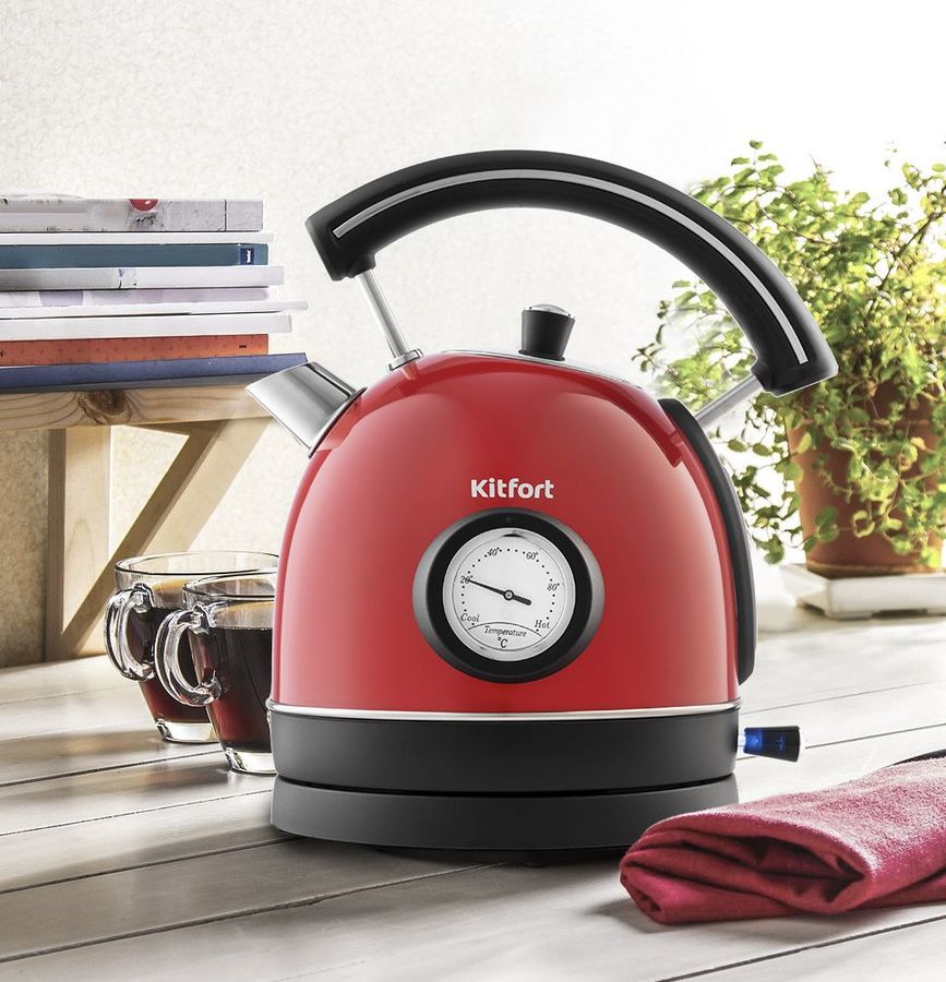 Описание: Чайник Kitfort КТ-688 имеет встроенный термометр, выполненный в винтажном стиле. Это очень удобно для заваривания различных напитков, для которых требуется определённая температура воды. Например, зелёный чай, белый чай, кофе и тд.