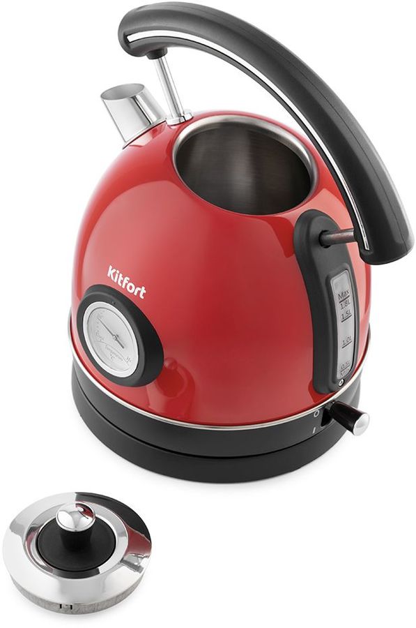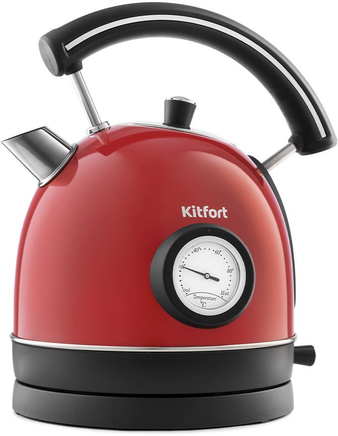 Чайник электрический KITFORT KT-688-1 имеет круглый винтажный термометр для регулирования температуры воды. Это необходимо для заваривания различных напитков и отваров. Также на корпусе чайника расположены индикатор включения, индикатор уровня воды. От накипи вас защитит нейлоновый фильтр-сеточка. Чайник стоит на подставке и изящно поворачивается легким движением руки вокруг своей оси.