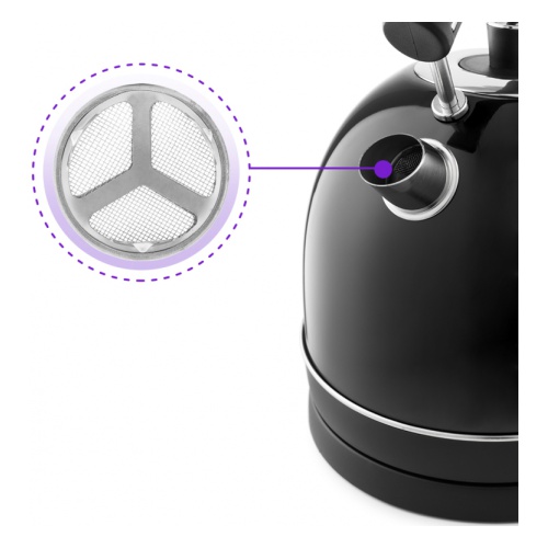 Специальная форма носика позволяет точно наливать воду в чашку без расплёскивания и брызг и быстро наполнять чайник. В носике чайника расположен съёмный фильтр от накипи из нейлона, который задерживает частички накипи и предотвращает их попадание в чашку.