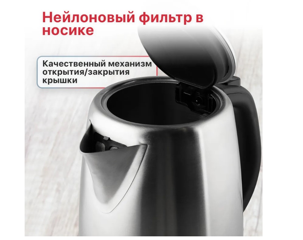 В носике чайника расположен фильтр для защиты от попадания накипи в напиток.