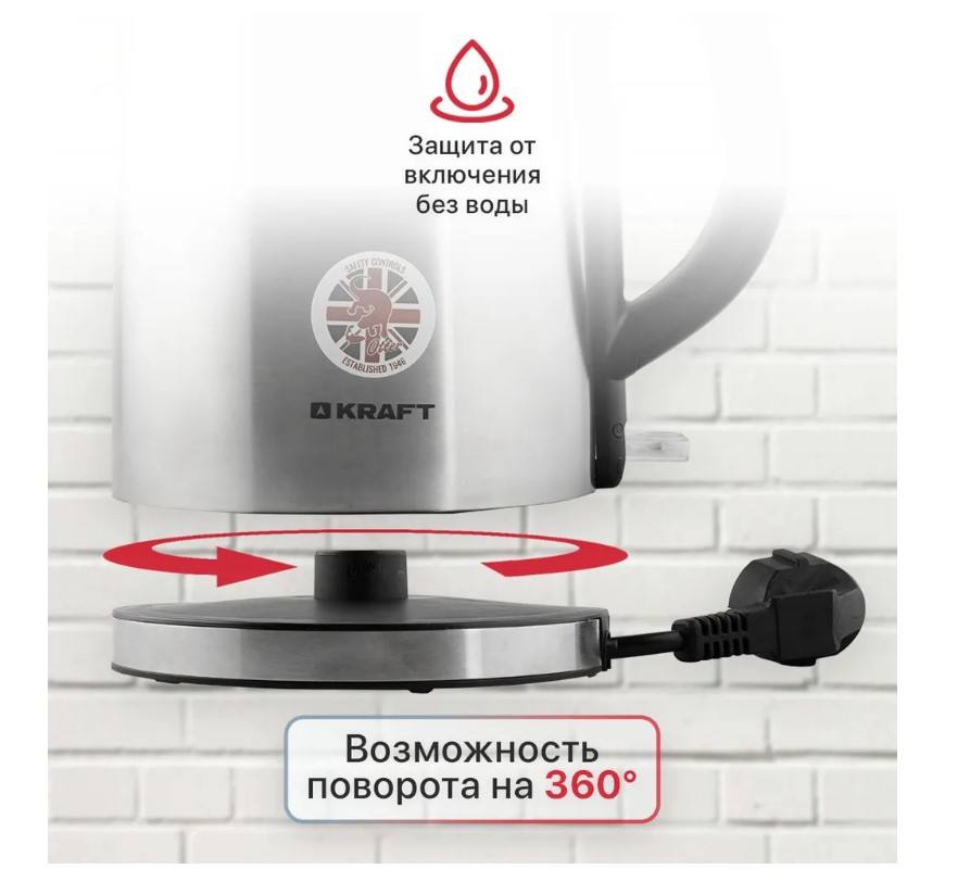 Дополнительная безопасность: чайник отключится сам при закипании и при недостаточном уровне воды.