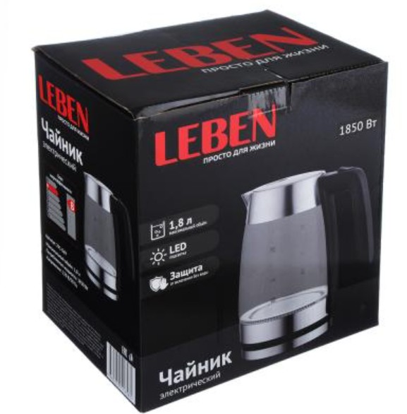 Чайник электрический 1,8л, 1850Вт, стекло, LED подсветка