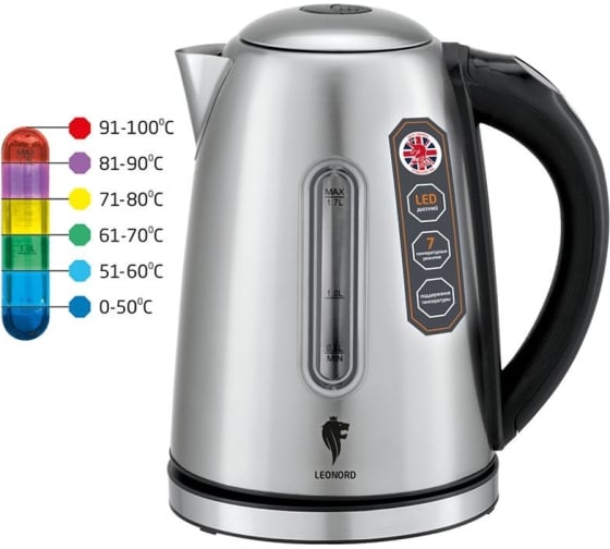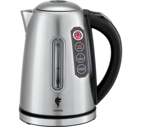 Электрический чайник Leonord LE- 1506 1.7 л стальной 104864 предназначен для использования в офисе или дома.