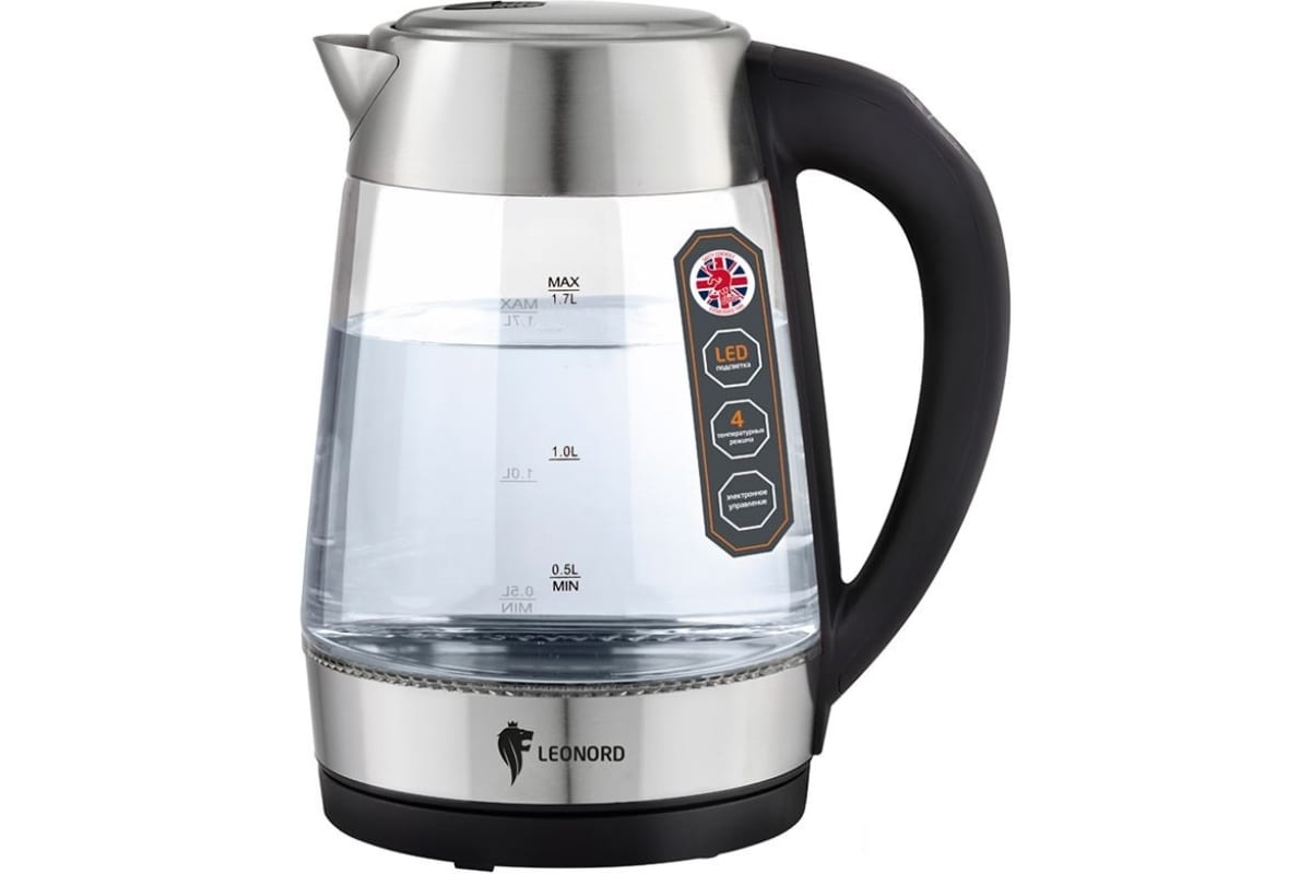 Электрический чайник Leonord LE- 1507 1.7 л стекло, пластик 104865 предназначен для использования в офисе или дома.
