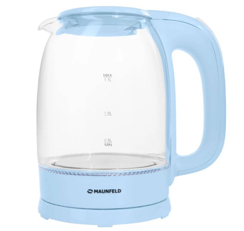 При включении загорается синяя подсветка, которая красиво подсвечивает кипящую воду и является индикатором включения чайника.
