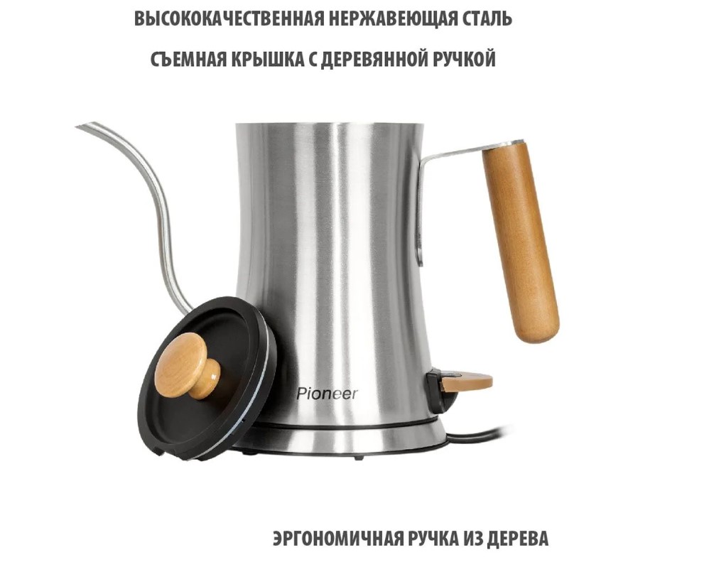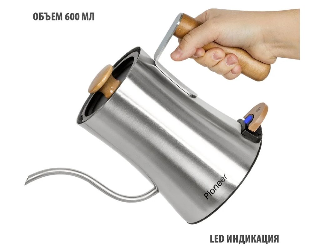 Особенности: ручка крышки и ручка чайника выполнены из дерева
