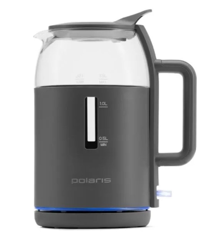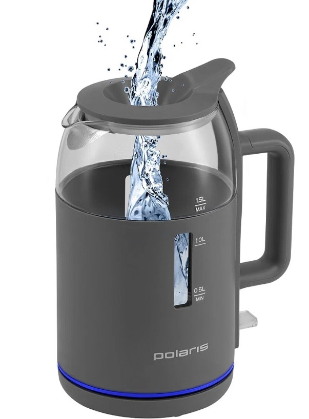 Чайник POLARIS PWK 1545 CGL Water Way Pro мощностью 2200 Вт имеет объем 1,5 л,