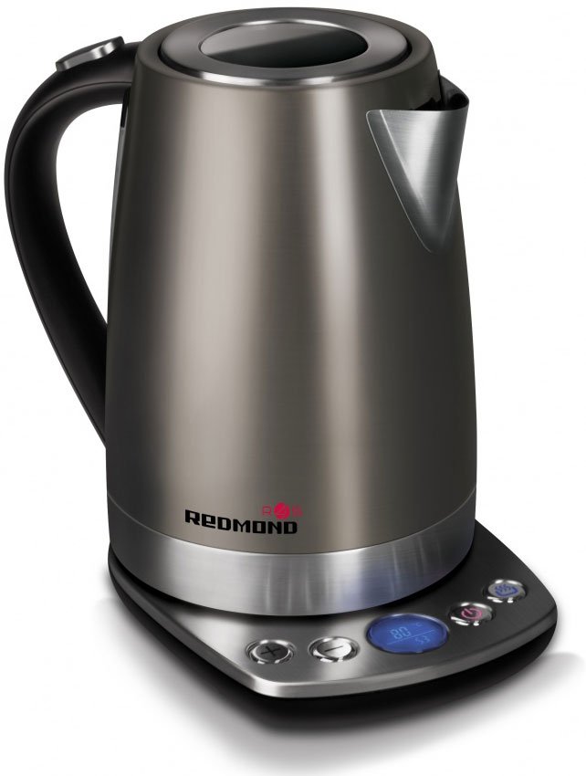чайник, объем 1.7 л, мощность 2200 Вт, закрытая спираль, установка на подставку в любом положении, стальной корпус, выбор температуры нагрева воды, дисплей, индикация включения, вес 1.3 кг