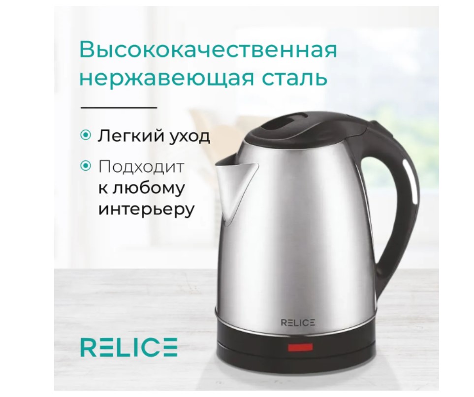 Внешний вид чайника простой и лаконично впишется в любой интерьер кухни. Он совсем не шумный и дома при заваривании электрического чайника будет только тихая и уютная атмосфера. Скорость закипания чайника достаточно быстрая и не заставить себя ждать, когда Вы куда-либо спешите. Материал кипятильника - из нержавеющего металла (нержавейки). Чайник не подтекает и это только придает ему плюс в его приобретении. У чайника нашего бренда отсутствует какой либо контакт воды с пластиком, мы следим и заботимся о качестве нашей продукции. Длина кабеля оптимальна и имеет стандартную длину. Его легко мыть, крышка удобно откидывается и очистить чайник изнутри не составит труда.