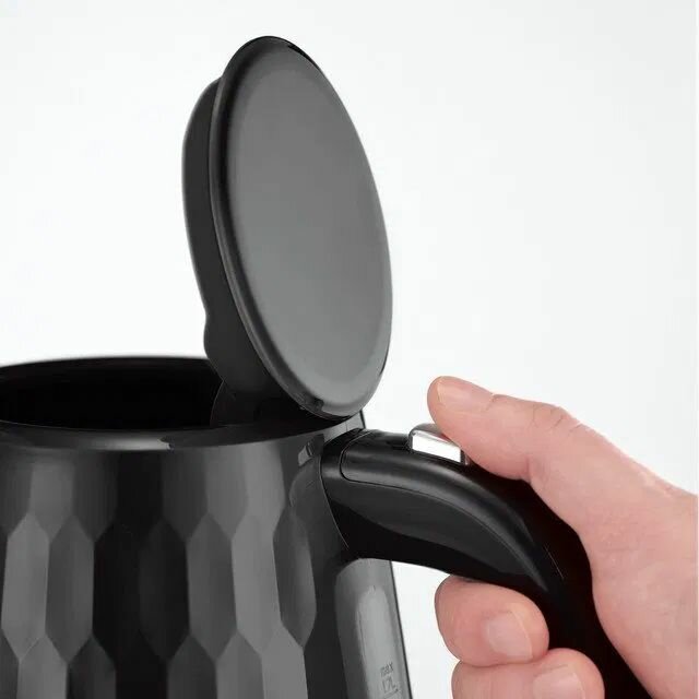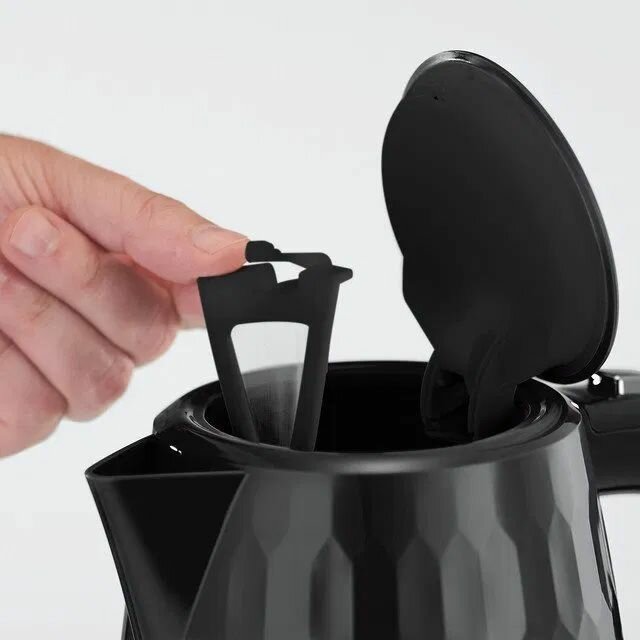 Корпус выполнен из высококачественного пластика черного цвета - элегантная комбинация текстурированной поверхности чайника и элементов, выполненных из нержавеющей стали