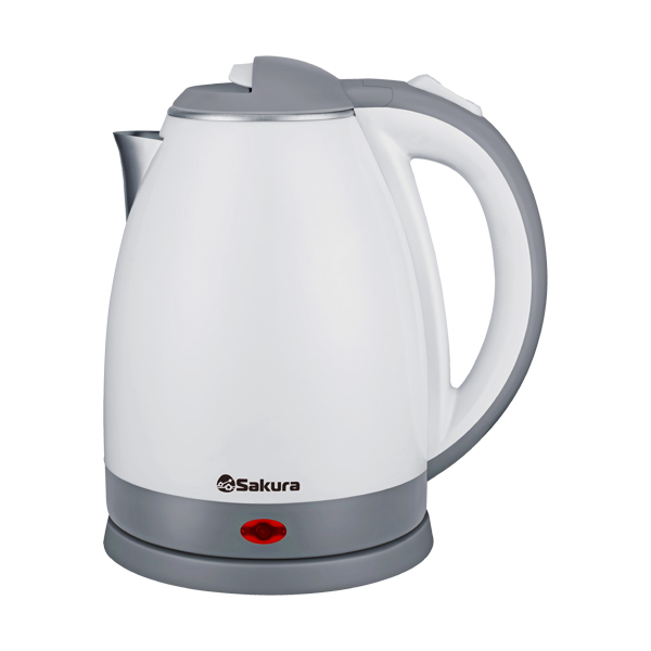 Чайник из нержавеющей стали с закрытым нагревательным элементом и двухслойным корпусом (термоизолированный пластик сверху, колба из нержавеющей стали внутри), быстрее нагревается и дольше удерживает тепло (эффект термоса), отключение при закипании/без воды, световой индикатор работы, вращение на 360°