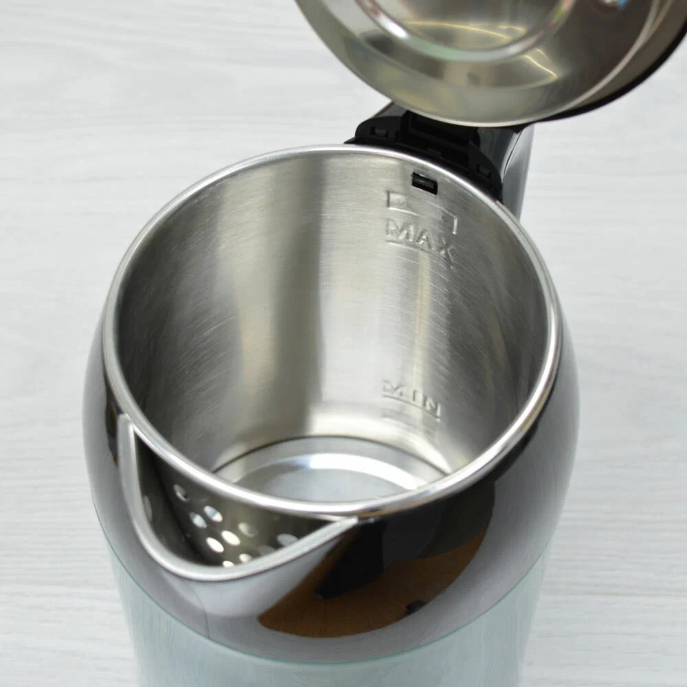 1.8 л, 1500-1800Вт, дисковый нагревательный элемент, двухслойный корпус, эффект термоса (быстрее нагревается и дольше удерживает тепло), отключение при закипании/без воды, световой индикатор работы, внутренний индикатор уровня воды, вращение на 360°.