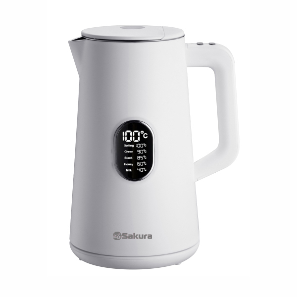 Чайник электрический Premium, 1.5 л, 1500-1800Вт, дисковый нагревательный элемент, контроллер STRIX, двухслойный корпус:нержавеющая сталь 18/10 и пищевой высококачественный пластик, 5 режимов нагрева: 40,60,85,90,100°С, управление чайником на ручке. Поддержание температуры 24 часа. LED-дисплей,отключение при закипании/без воды, световой индикатор работы, внутренний индикатор уровня воды, вращение на 360°.