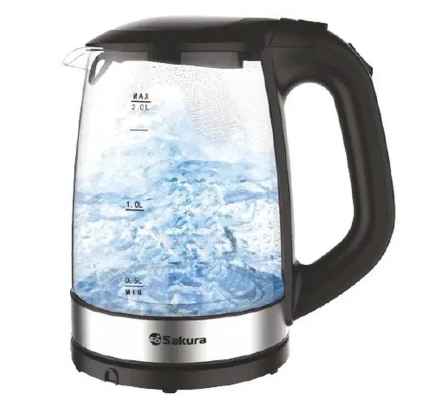 Чайник SAKURA SA-2731BK (2,0) стеклянный корпус, LED подсветка.