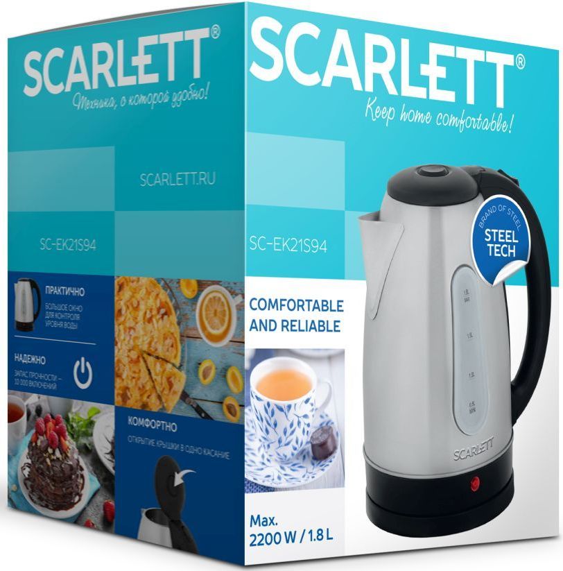 Описание: Электрический чайник SC-EK21S94 с увеличенным объемом 1,8л оснащён автоматической системой открытия крышки. Эргономичная ручка, большое окно для контроля уровня воды, автоматическое открытие крышки, закрытый нагревательный элемент сделают эксплуатацию прибора еще проще и комфортнее.