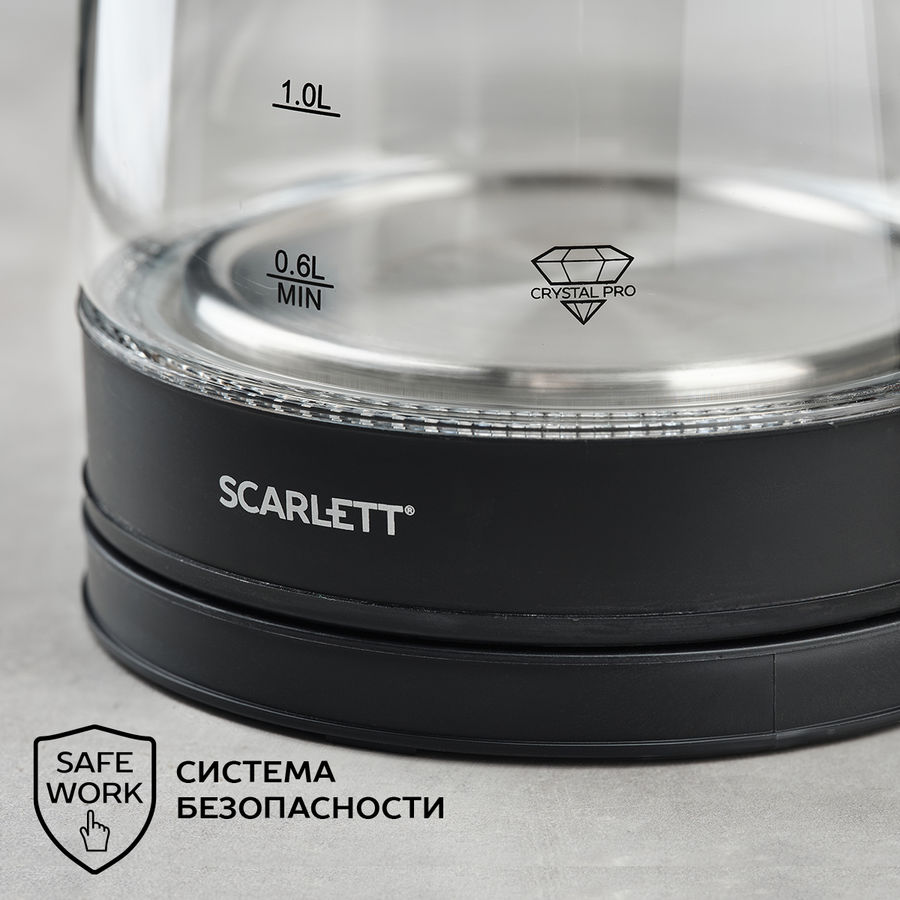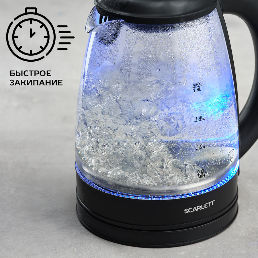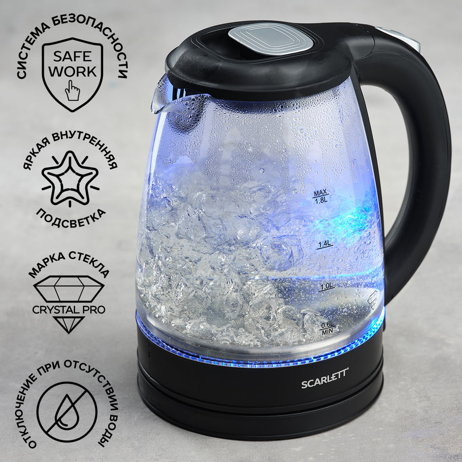 Корпус из высококачественного термостойкого стекла не изменяет полезных свойств воды и в сочетании с внутренней подсветкой позволяет наблюдать за завораживающим процессом кипячения. Классическое сочетание цветов позволит ему вписаться в любой интерьер.