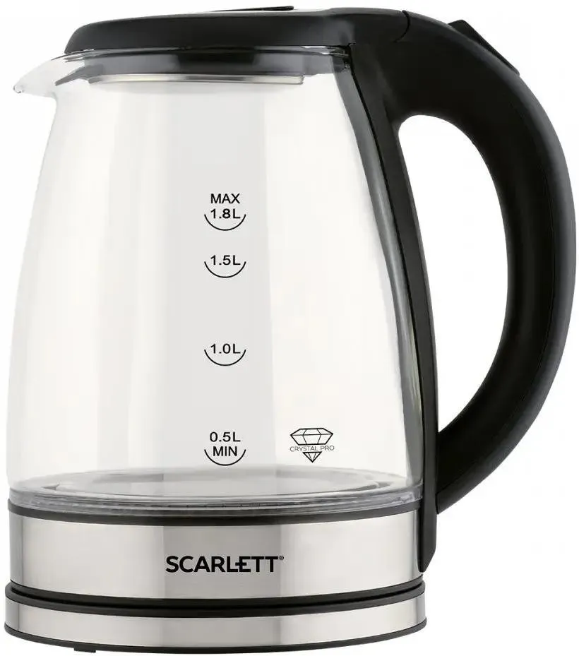 Эргономичная ручка, закрытый нагревательный элемент сделают эксплуатацию прибора еще проще и комфортнее. Внутренняя подсветка позволит наблюдать за завораживающим процессом кипячения.Классический черный цвет корпуса в сочетании с металлической декорацией позволит прибору вписаться в любой интерьер кухни.