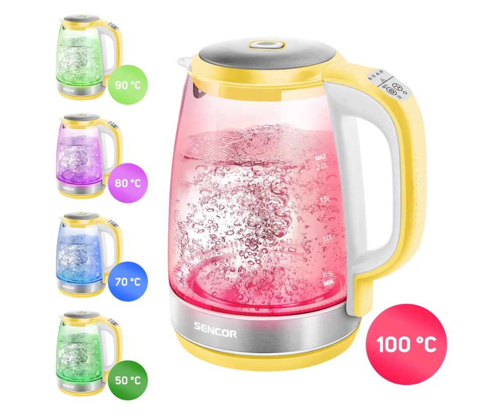 ✅Электрический чайник Sencor SWK 2196 YL изготовлен из высококачественного боросиликатного термостойкого стекла.