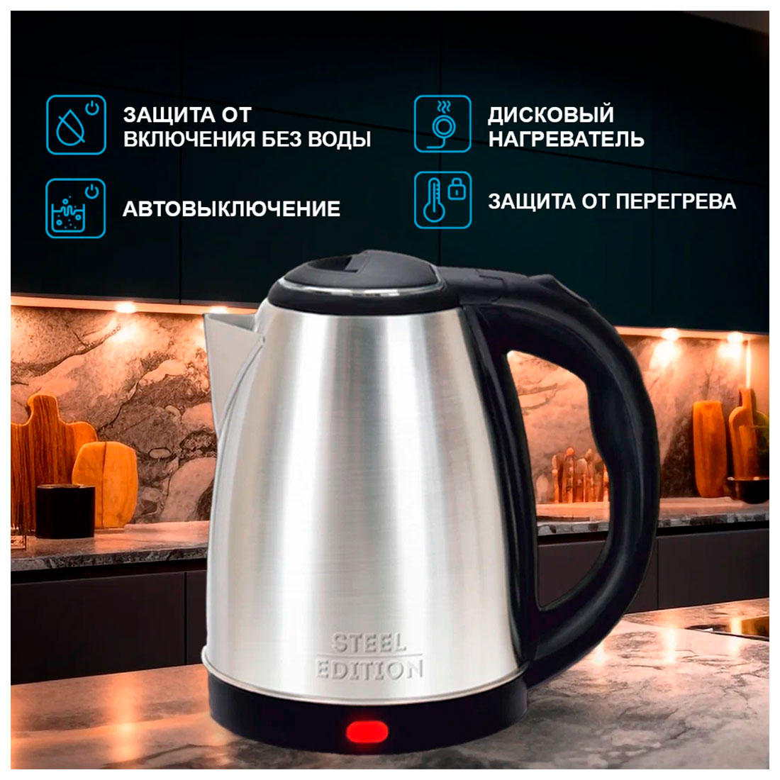 Электрический чайник SteelEdition A05 - это сочетание стиля и функциональности. Выполненный в черном и серебристом цвете, он станет стильным дополнением к вашему кухонному интерьеру.