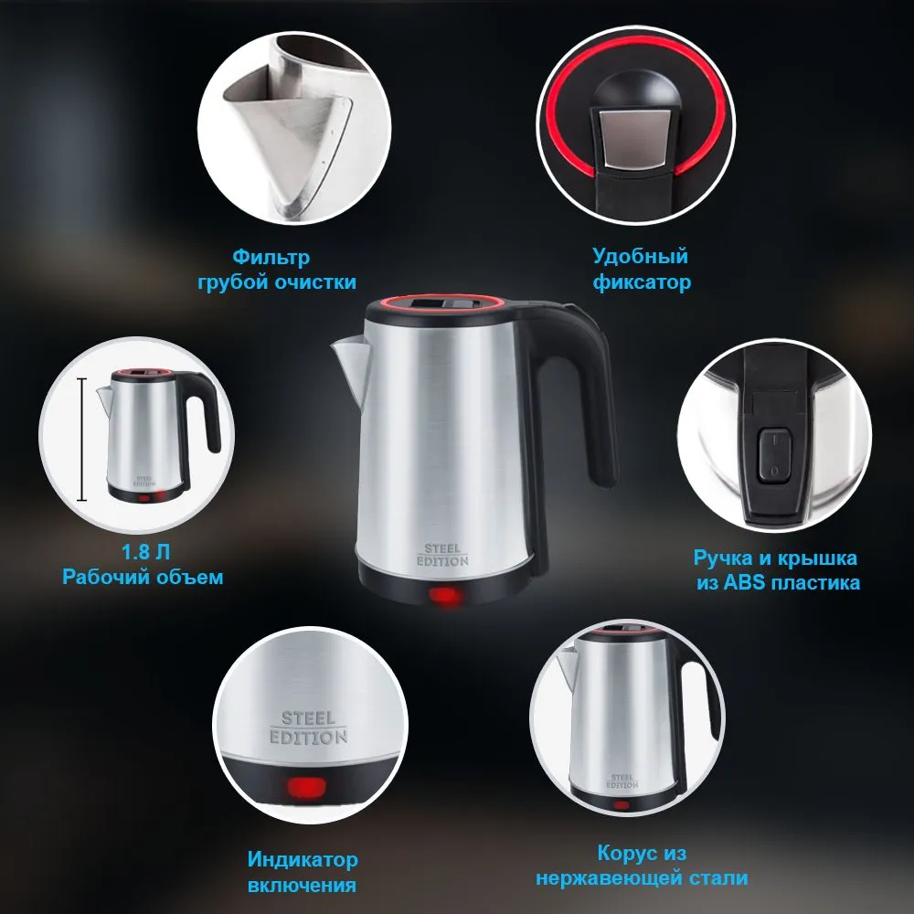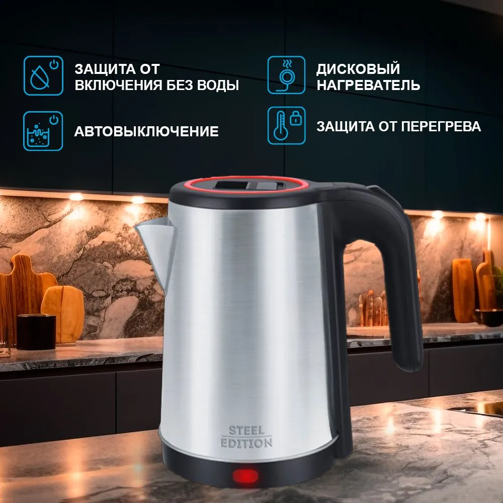 Выбирая электрический чайник SteelEdition A07, вы получаете надежное, стильное и функциональное устройство для приготовления горячих напитков в любое время.