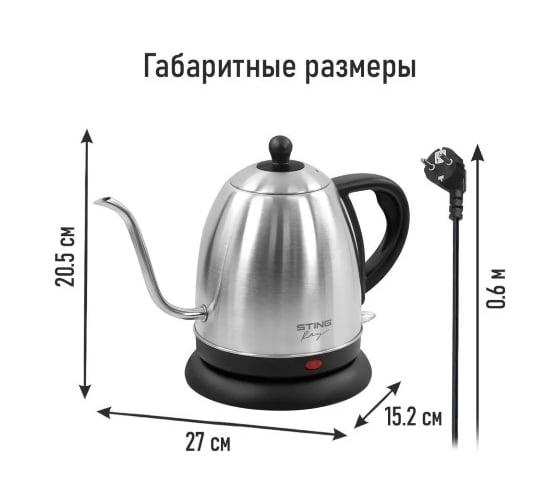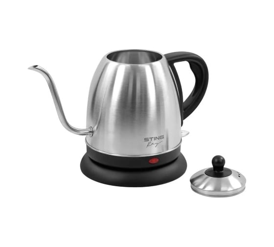 Чайник металлический STINGRAY ST-KT3014A черного цвета представляет собой надежное и функциональное устройство для быстрого кипячения воды. Его объем составляет 1.2 литра, что делает его удобным для использования в небольших семьях или офисах. Мощность в 1800 Вт обеспечивает быстрое нагревание воды до 100 градусов, а закрытый нагревательный элемент защищает от накипи и облегчает уход за прибором. Корпус из пластика и металла сочетает в себе прочность и современный дизайн, а стальной и черный цвета придают ему стильный вид. Чайник оснащен съемной крышкой для удобного наполнения и чистки, а также имеет защиту от включения без воды, что повышает безопасность использования. Вращение на подставке позволяет легко устанавливать чайник в любом положении, а LED-индикатор работы информирует о процессе нагрева.