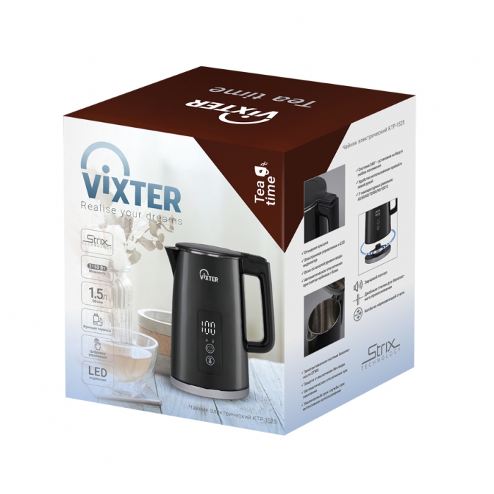 Устройство предназначено для нагрева и кипячения питьевой воды. Оно также умеет функцию нагрева воды до установленных температур 40/50/60/70/80/90°С. Благодаря высокой мощности чайник доводит воду до кипения за считаные минуты. Корпус чайника не нагревается снаружи, благодаря двойным стенкам, что делает его более безопасным.