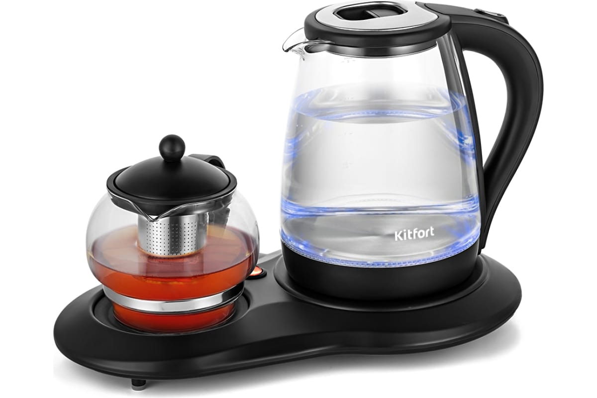 Горячий чай в любой момент! Стильный и функциональный чайный набор Kitfort КТ-6178 состоит из чайника ёмкостью 2 л, кувшина с фильтром для заварки ёмкостью 1 л и базы. Набор поможет вам не только вскипятить воду, но и заварить чай или кофе за пару движений!