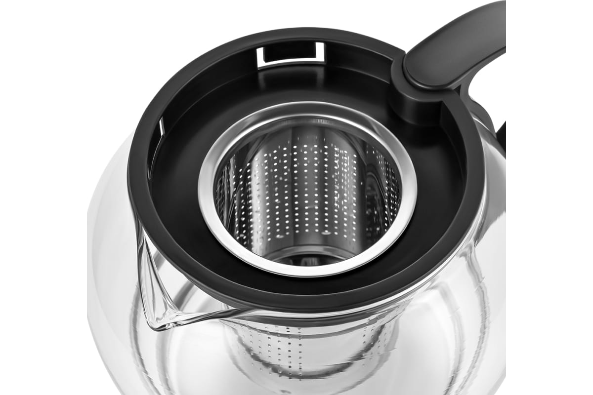 Кувшин для заварки изготовлен из термостойкого стекла и имеет съёмный фильтр для чая или кофе. В месте установки кувшина на базу присутствует скрытый нагревательный элемент с функцией поддержания тепла. Корпус чайника выполнен из стекла с вставкой из пластика. Нагревающий элемент встроен в дно чайника под нержавеющей пластиной. Мерная шкала находится на боковой стороне стеклянной части корпуса.