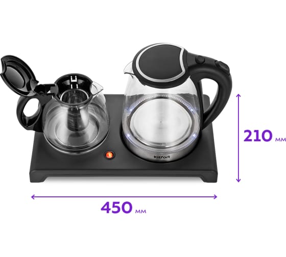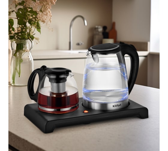 Стильный и функциональный чайный набор Kitfort КТ-6180 состоит из чайника емкостью 2 л, кувшина с фильтром для заварки емкостью 1,2 л и базы. Набор поможет вам не только вскипятить воду, но и заварить чай или кофе.
