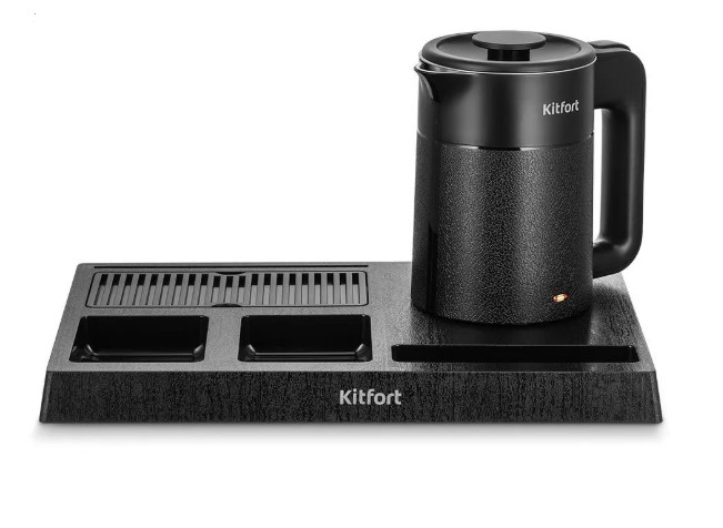 Чайный набор КТ-6690 состоит из чайника и подставки с отсеками для чайных принадлежностей, а также отсеком для чашек с решёткой и поддоном для капель. Подставка с центральным контактом даёт возможность крутить чайник на ней на все 360°.
