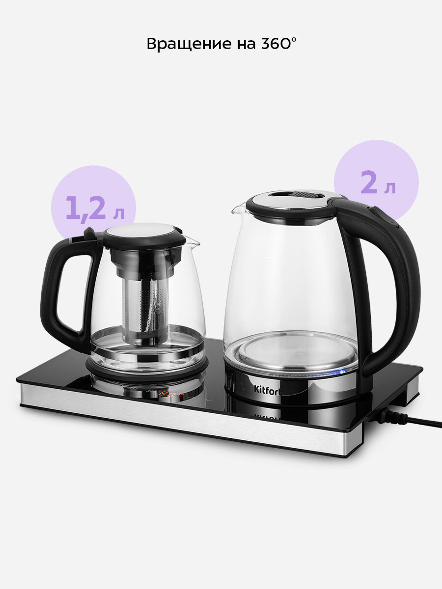 Чайный набор КТ-6737 представляет собой идеальное сочетание функциональности и удобства. Вскипятите воду, заварите чай или кофе в заварочном чайнике, а встроенная платформа с подогревом поможет сохранить готовый напиток теплым.