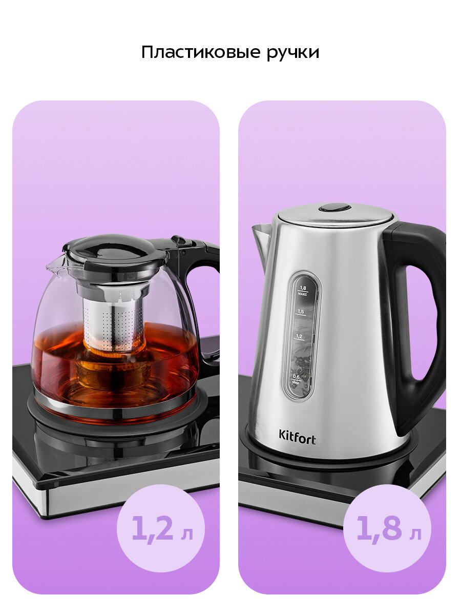 Чайный набор КТ-6677 представляет собой идеальное сочетание функциональности и удобства для настоящих ценителей чая. В наборе вы найдёте обычный и заварочный чайники, которые позволят вам наслаждаться чашечкой свежего и ароматного чая без лишних хлопот.