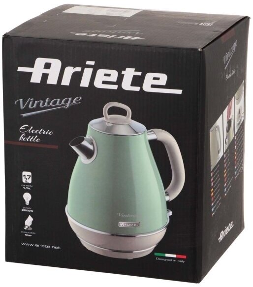 Нагревательный элемент скрыт, при закипании происходит автоматическое отключение - все это позволяет приобретать ARIETE VINTAGE 2869 в дома, где есть дети. Чайник подходит для частого ежедневного использования, за ним просто ухаживать - достаточно периодически промывать удобный съемный фильтр и протирать внешние поверхности от стандартных кухонных загрязнений.