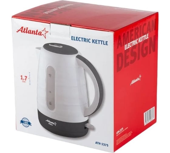 Электрический чайник Atlanta пластиковый ATH-2375 white предназначен для использования в офисе или дома.
