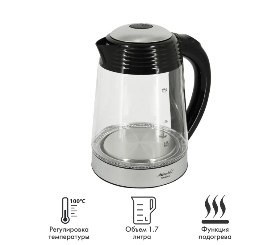 7 режимов нагрева и поддержания температуры – 40/50/60/70/80/90/100°СКорпус из термостойкого стекла