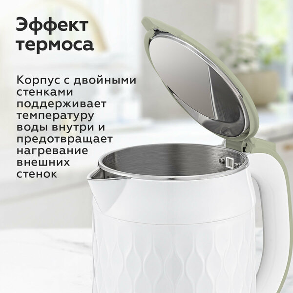 Комплектация: чайник, подставка для чайника, руководство по эксплуатации, гарантийный талон