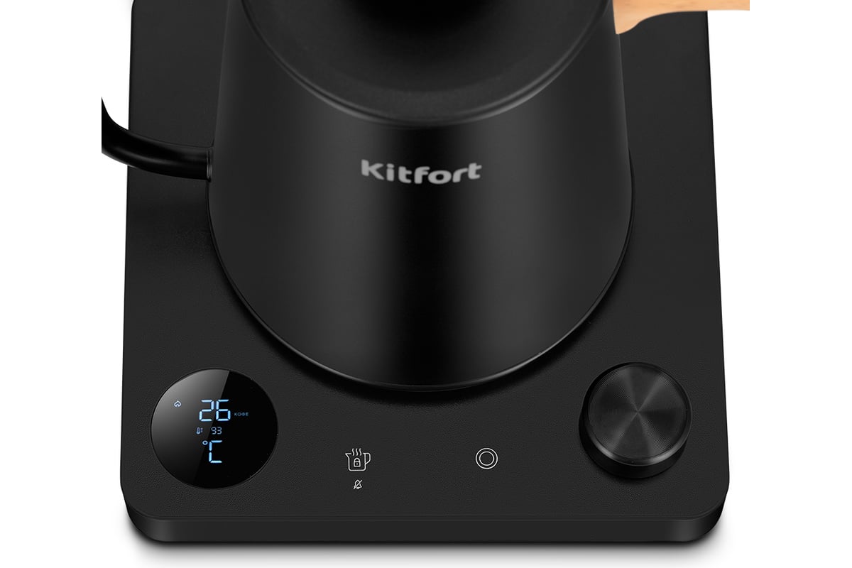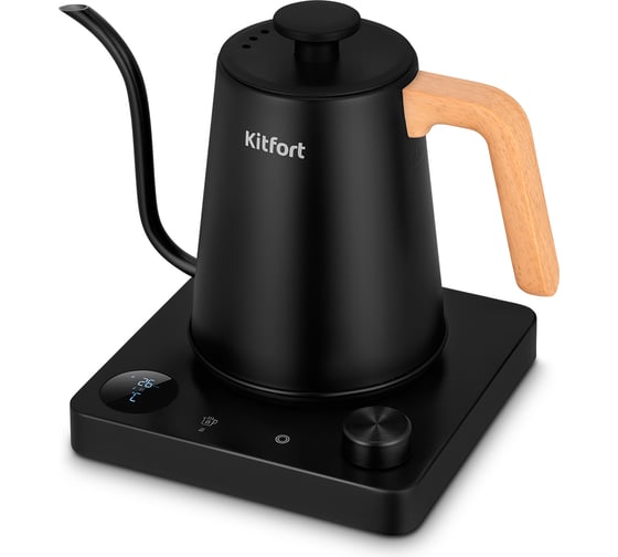 Электрический чайник для варки кофе Kitfort КТ-6726 предназначен для кипячения и нагрева воды, а также приготовления кофе способами кемекс или пуровер. Чайник может нагреть воду до температур от 40 до 100 °С, что очень удобно при приготовлении детского питания и заваривании кофе и различных сортов чая.