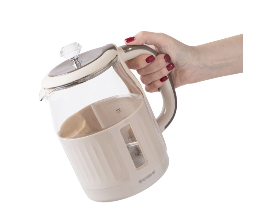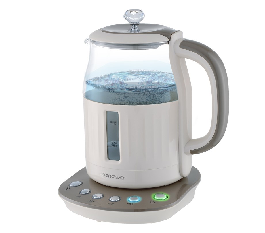 Кнопочная панель управления, Функция поддержания температуры, 4 температурных режима для подогрева воды, Эргономичная ненагревающаяся ручка, Беспроводное соединение позволяет вращать чайник на подставке на 360°, Скрытый нагревательный элемент, Автоотключение при закипании, Автоотключение при отсутствии воды, Два типа стенок для предотвращения контакта с горячей поверхностью, Отсек для хранения шнура