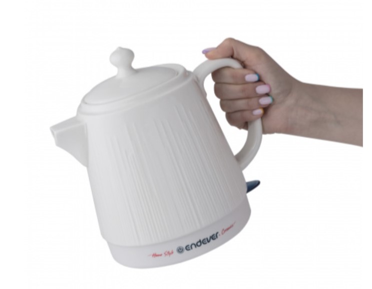Корпус из эко-керамики сохраняет полезные свойства воды, Беспроводное соединение позволяет вращать чайник на подставке на 360°, Дисковый нагревательный элемент, Автоотключение при закипании и отсутствии воды, Эргономичная ненагревающаяся ручка, Удобный носик для розлива воды, Встроенный несъемный крупноячеистый фильтр для сбора накипи