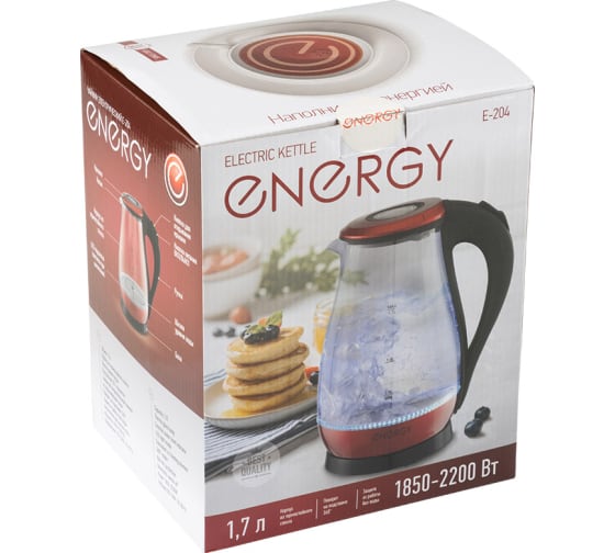 Чайник ENERGY E-204 1.7 л стекло, пластик цвет красный 164140 предназначен для использования в офисе или дома.
