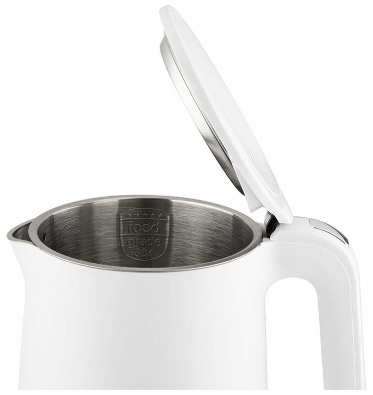 Объем чайника 1,7 литра с повышенной мощностью 1,8 кВт для самого быстрого закипания воды и закрытый нагревательный элемент для противостояния накипи и легкости ухода.