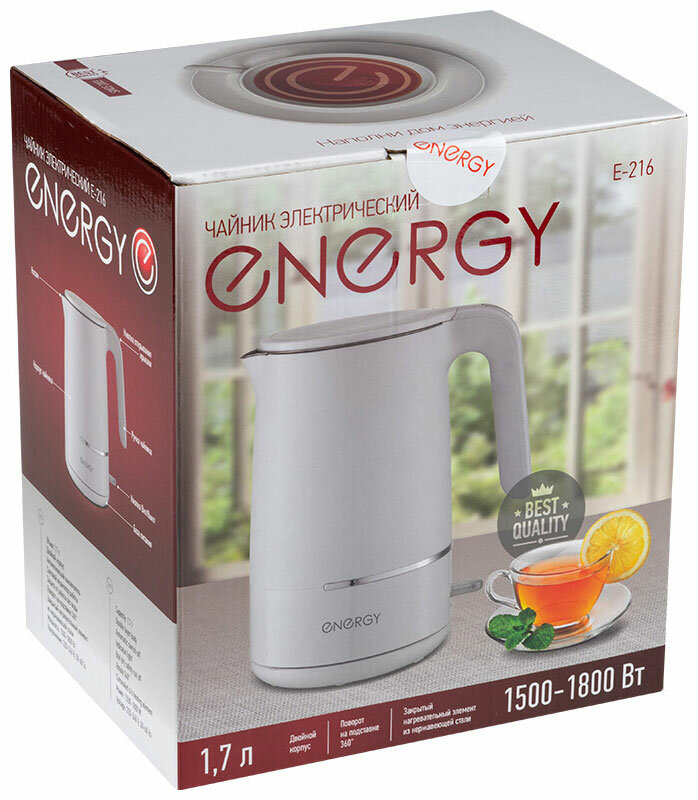 Чайник Energy E-216 (1,7 л), белый, двойной корпус - автоматически выключается, при закипании воды, а также, когда ее нет или недостаточно. Эта функция бережет чайник от раннего износа или сгорания.