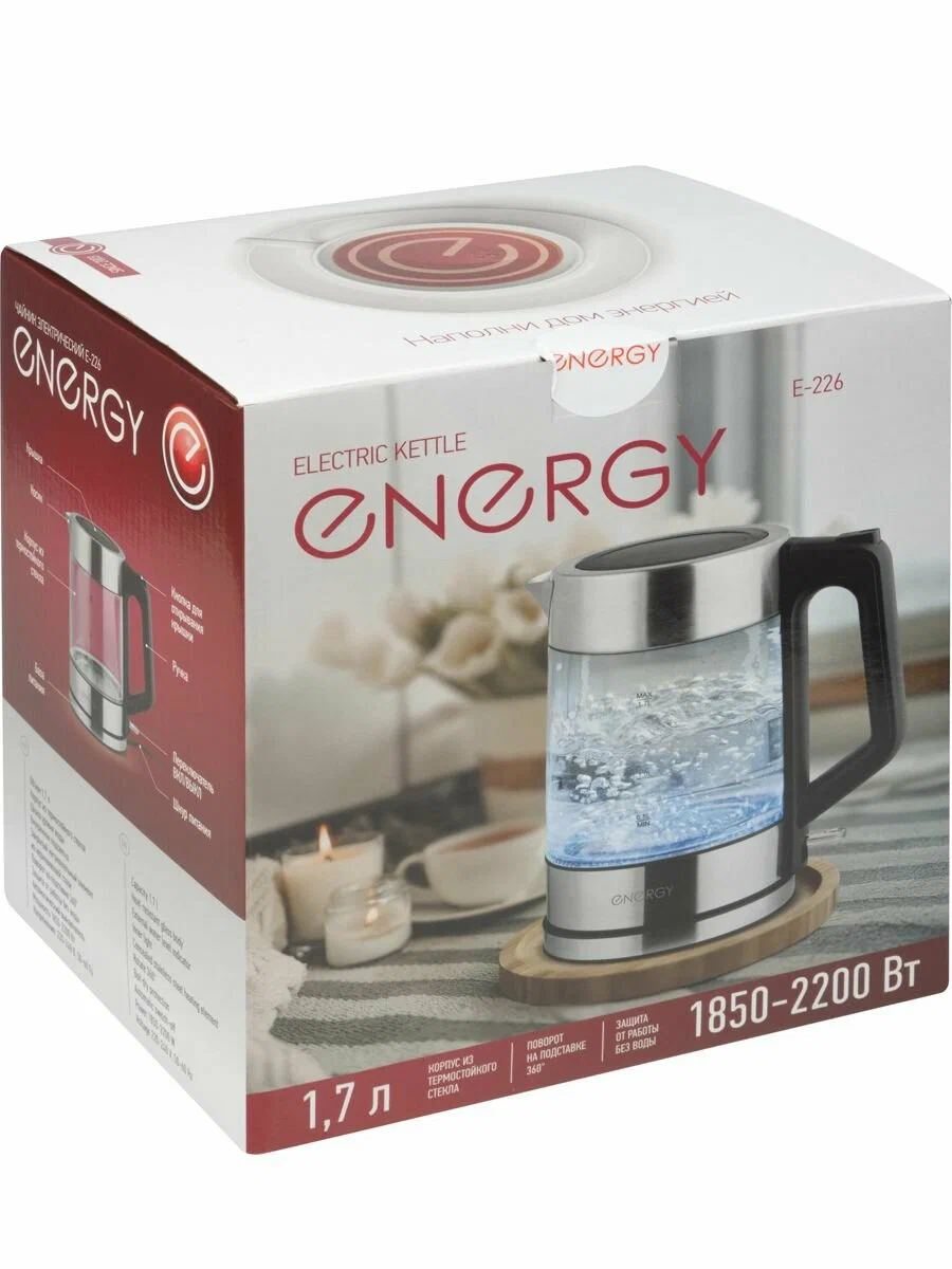 Электрический чайник Energy E-226 с объемом 1,7 литра выполнен из термостойкого стекла, что придает устройству современный и эстетичный внешний вид.