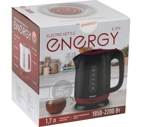 Чайник Energy E-274 1.7 л, диск пластик 164078 предназначен для использования в офисе или дома.